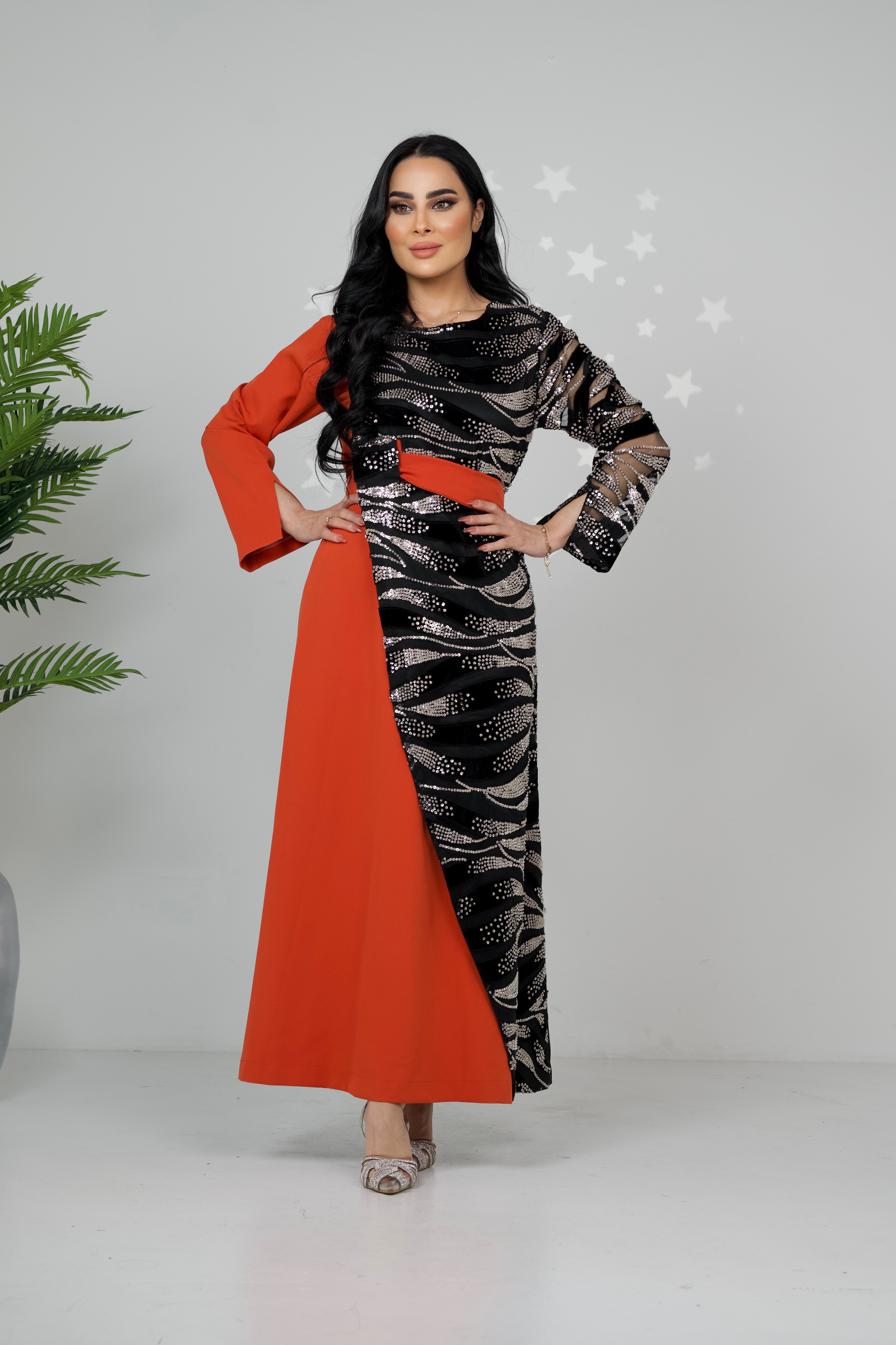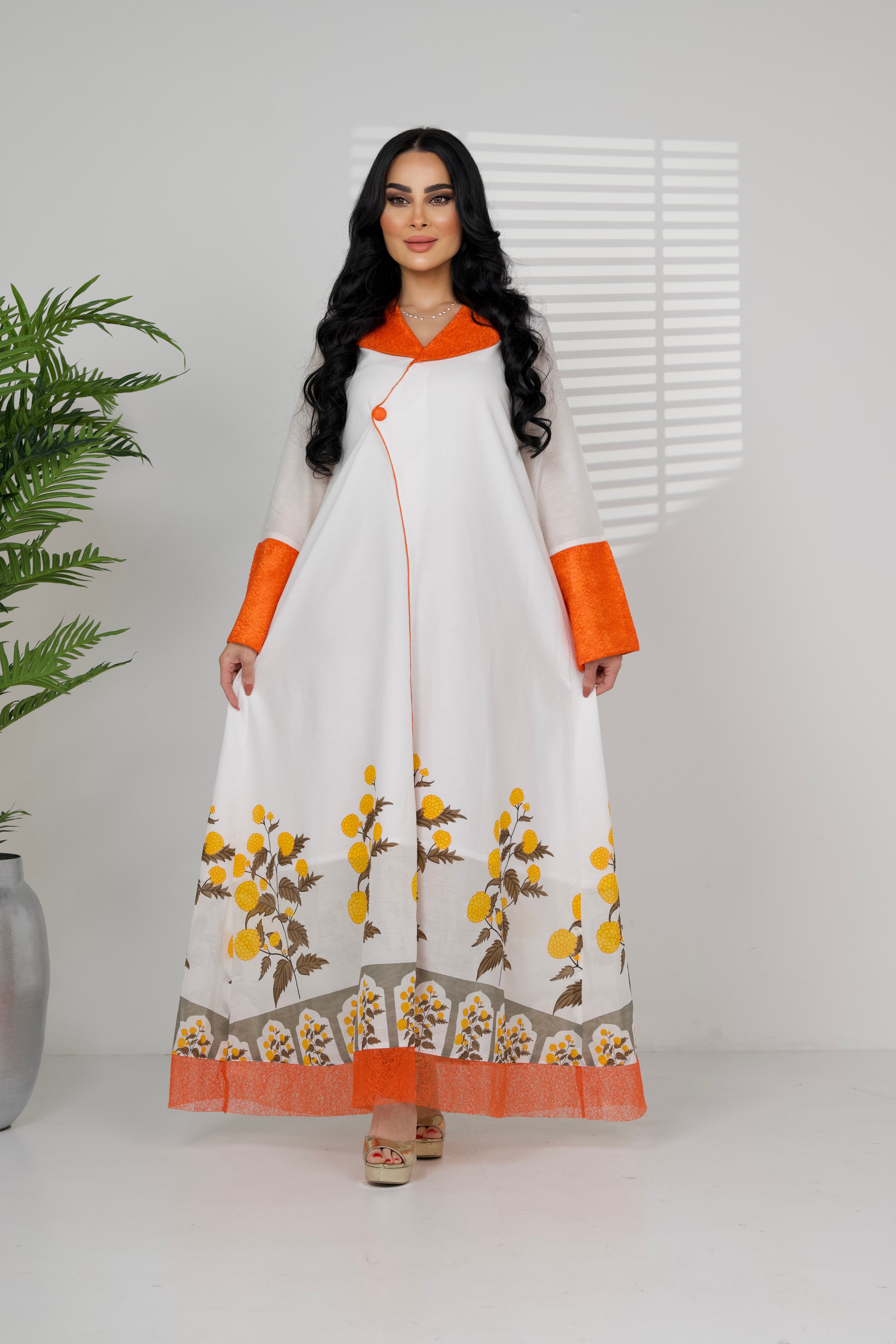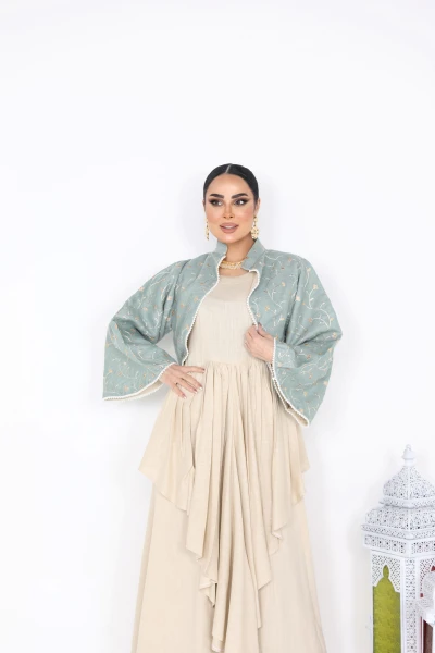 D32 بدله قطعتين من قماش النن المطرز مع لنن سلاب