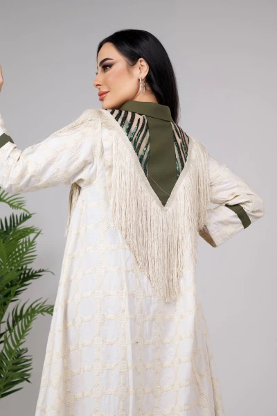 D57 دراعه من قماش القطن المطرز مع كريب باربي مع ترتر