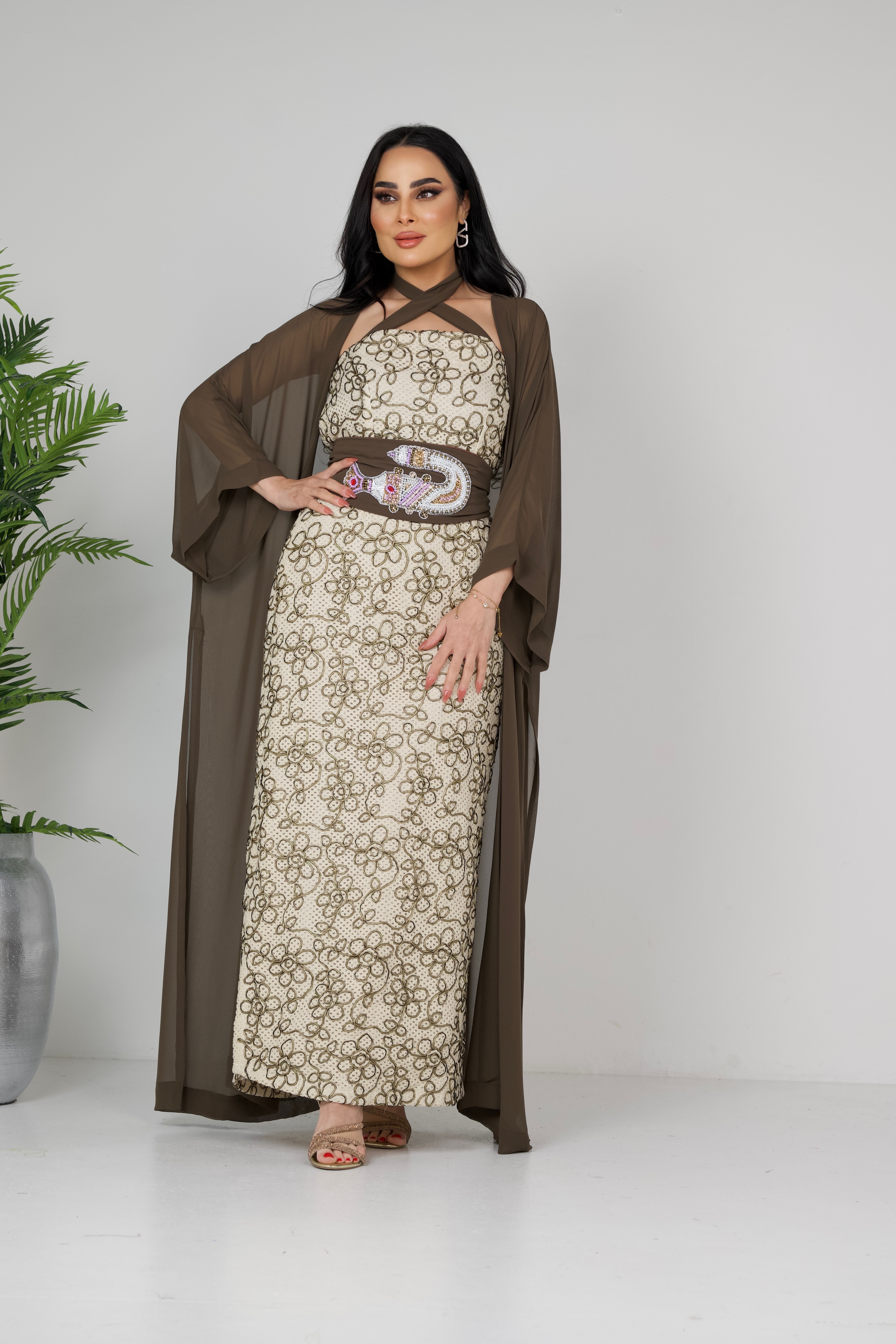 D17 بدله من قماش النن المطرز مع...