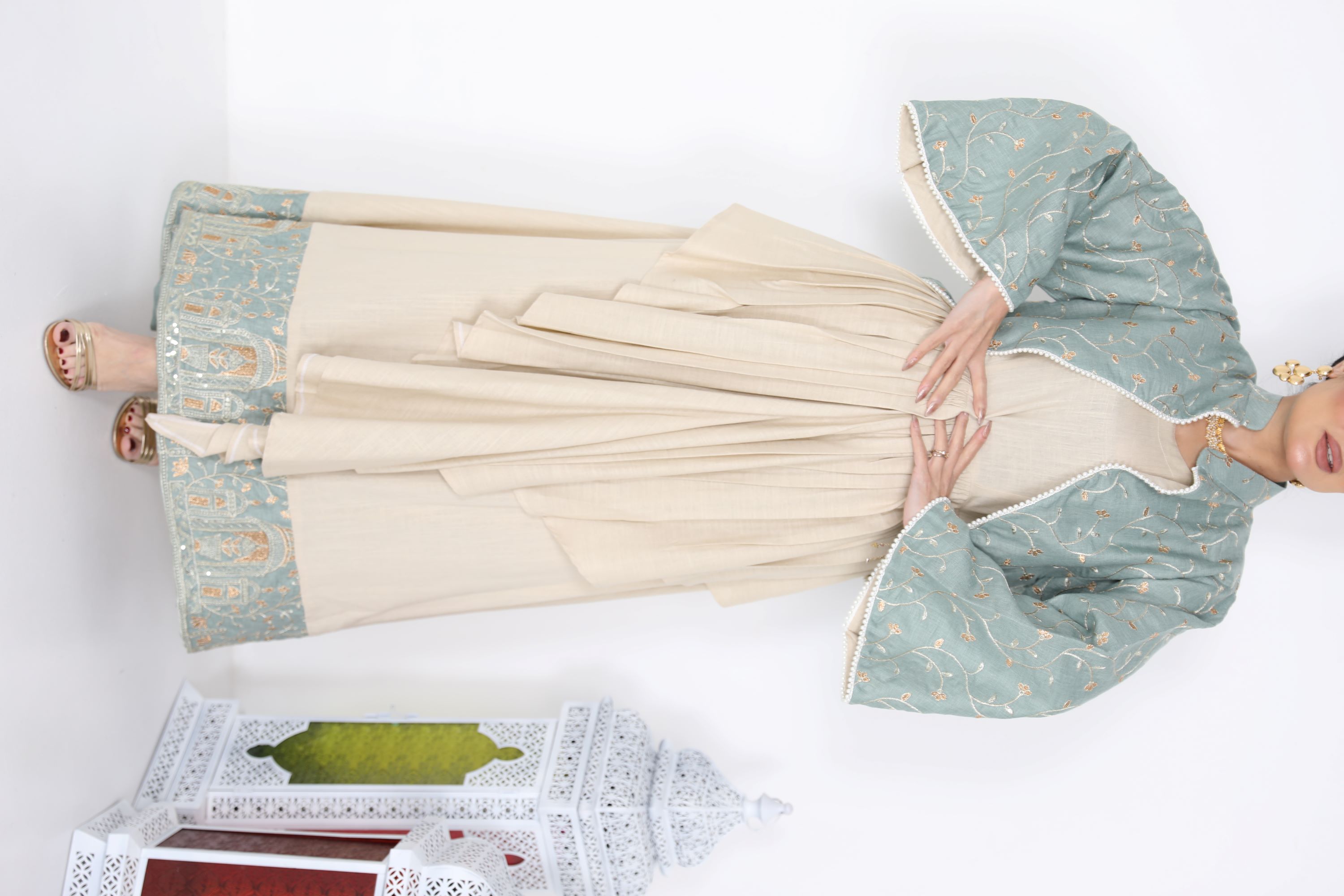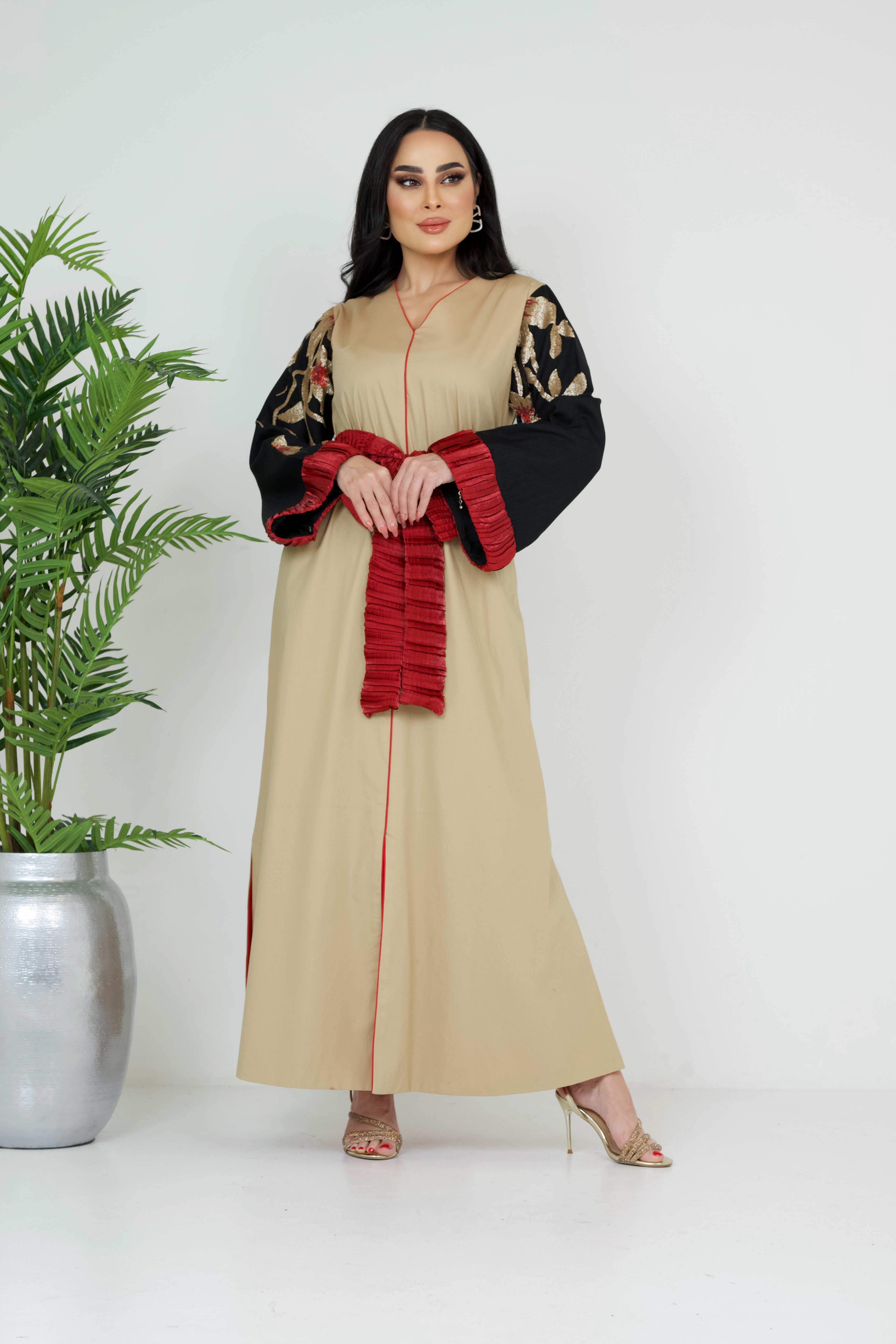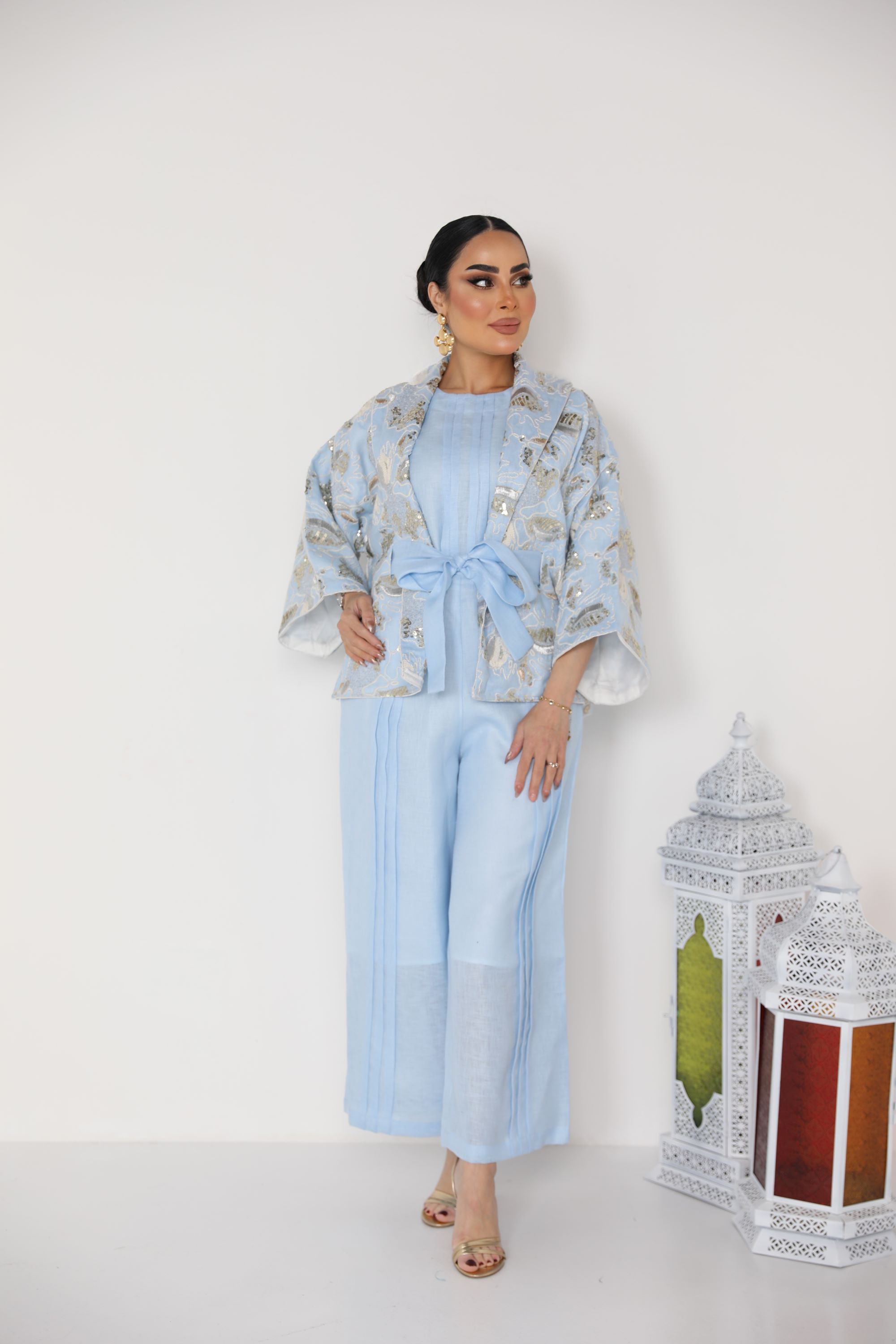 D89 بدله قطعتين من قماش الحرير الامعه مع لنن مقلم مع شك يدوي