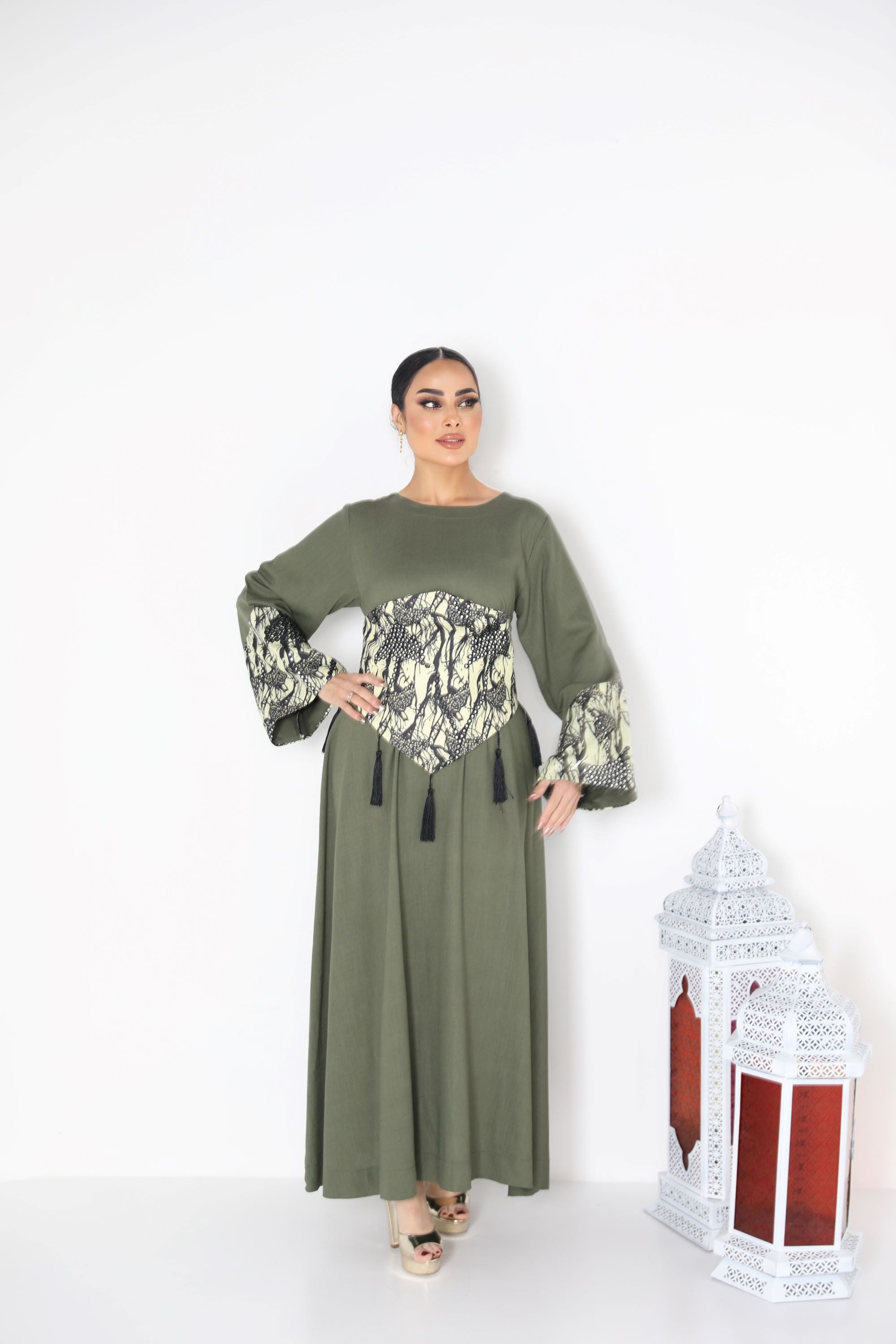 D36 دراعه من قماش النن المطرز مع...