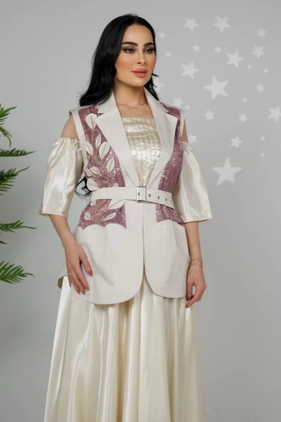 D79 بدله قطعتين من قماش الجنز مع دانتيل مع حرير اندونيسي مع شك يدوي
