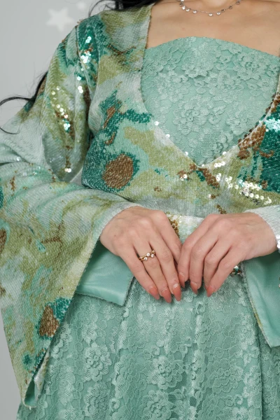 D101 بدله قطعتين من قماش الترتر مع دانتيل اندونسي